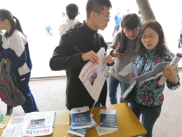 在中学的风雨跑道上,宣讲小组向同学们展示437必赢会员中心招生手册和校园报,不断向学弟学妹们讲解矿大得天独厚的地理优势、风景如画的校园环境、种类繁多的专业和硕果累累的教学成果。接着,宣讲小组拿着宣传手册进班宣传,讲解过程中,成员们相互合作配合,高三学子们积极提问,现在气氛活跃。宣讲结束,成员们摆放好摆摊用的桌椅后自行解散,本次活动顺利结束。