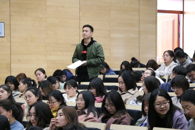 会议伊始,毕业班辅导员陈文雯老师对会议的主要内容做了介绍。本次大会主要分为四个部分。首先由教学办胡晓蕾老师为同学们做毕业班学业情况的通报,强调了学分核对的重要性,为同学们对关于毕业设计的问题进行了解答。接下来,来自融创中国徐州分公司招聘部的周滨滨经理用幽默风趣的语言,结合具体案例,为大家详细讲解了在制作简历和参加面试的过程中应注意的问题,包括填写简历、参加招聘笔试和面试等技巧,以及遇到各种突发情况时的应对策略,并在现场与同学们进行了答疑,告诉迷茫的同学们,在机会来临之前做足充分的准备,然后沉着面对招聘季。而后,行政主管范乾坤老师为周经理授予聘书,代表学院聘任周经理为学院职业生涯导师。仪式结束后,陈文雯老师为同学们填报就业信息的问题做了耐心细致的讲解,还结合多年学生工作经验,为同学们在就业过程中可能遇到的困难提供了个人的建议,帮助同学们做好人生的规划。大会的最后,姬妲瑾老师为同学们对毕业班日常事务进行了补充和说明。