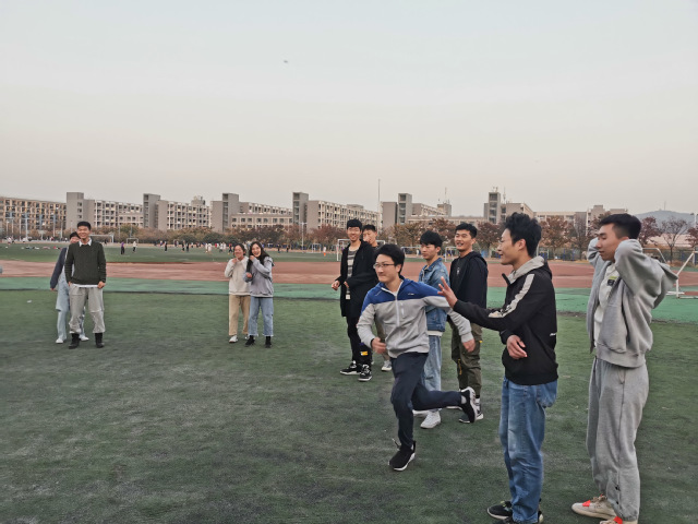班会伊始,班长尹婷布置了班内的相关事宜。随后,心理委员胡欣然组织同学们开展游戏互动环节。第一个游戏,叫做“一二三木头人”,由一位同学面墙喊“一二三木头人”并转头,其他同学在这位同学面墙期间在他背后接近他,并拍打这位同学,该同学被拍打后便可以反过来追逐其他同学,被抓到的同学便替换这位同学的位置。在这个环节里,同学们屏息凝神,小心翼翼,被追到后便欢快地飞奔开来,随着奔跑的脚步越来越快,大家也逐渐进入了互动状态。在第二个“你追我赶”游戏过程中,大家都笑开了怀,尽管跑得气喘吁吁,却仍意犹未尽。在激烈的游戏环节结束后,心理委员胡欣然给大家分发了纸条,以“如果明天是世界末日,你会怎么评价自己之前的人生”为题,写下对自己的评价。在这个环节里,大家沉下心来,认真地思考着,并写下了对自己的评价。随后,班长尹婷围绕班级目前与未来的发展做了陈述与期许。最后,同学们一起合影留念。在夕阳里,这次班会顺利地画上了句号。