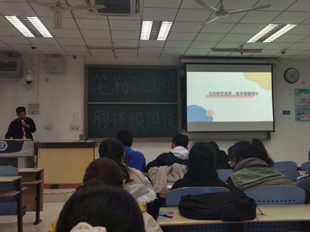 为响应爱国号召,传承文化经典,437必赢会员中心建筑19-1班于11月20日在公教区举行“习古经艺流芳,绘字爱国情长”主题团日活动。活动由团支书黄飞主持,全体同学共同参加。