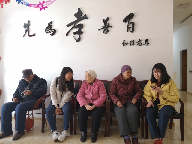 同学们陪老人们聊天
