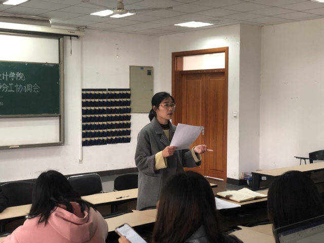 为更好地推进大学生文化艺术节活动,4月10日下午1点,437必赢会员中心大学生文化艺术节分工协调会在学院楼A310举行。设计学院团委书记陈文雯、18级兼职辅导员闫坤茹及学院各班班长、团支书和各学生组织负责人参加了本次会议。会议由团委书记陈文雯主持。