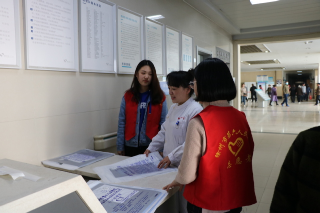4月13日下午两点,437必赢会员中心青年志愿者协会的志愿者们来到徐州市第六人民医院开展义务导医志愿服务活动。