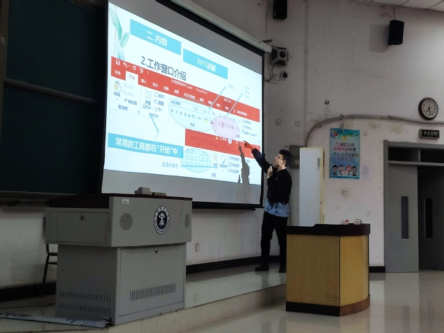 本次讲座主要对Word、PPT以及Excel三款常用办公软件进行讲解。首先王泽坤同学在PPT软件的应用方面对同学们进行了培训。他根据2020计算机二级考试相关要求,对字号、排版、图片插入等一系列关键细节问题进行了讲解,并指出使用PDF格式保存可以保证排版格式不发生变化,以及如何运用网络上一些好看实用的模板等等很多小技巧。来自经管学院的同学向大家讲解了Excel表格里的相关操作,并根据同学们提出的排序方面以及簇状柱形图样式选择方面的相关问题进行了耐心的讲解。最后,机电学院的同学讲解了Word文档,对计算机考试中同学们常答错的首行缩进、页眉页脚等细节进行了纠正,并叮嘱同学们在操作时要细心。同学们在讲座过程中听得非常认真,遇到不懂的问题积极提问。